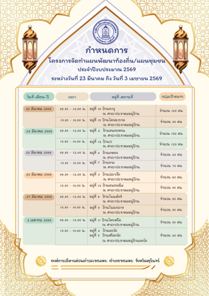 วันที่ 23 มีนาคม 2569 เวลา 13.30 น. องค์การบริหารส่วนตำบลจอมพระ ออกพื้นที่ ณ ศาลาประชาคม บ้านอาภู หมู่ที่ 10 เพื่อดำเนินโครงการจัดทำแผนพัฒนาท้องถิ่น/แผนชุมชน ประจำปีงบประมาณ พ.ศ. 2569 โดยมีนายธนศักดิ์ ธนาศุภวัฒน์ ตำแหน่งนายกองค์การบริหารส่วนตำบลจอมพระ คณะผู้บริหาร สมาขิกสภาอบต.จอมพระ พร้อมด้วยเจ้าหน้าที่อบต.จอมพระ พร้อมทั้งประชาสัมพันธ์การดำเนินงานตามอำนาจหน้าที่ของค์การบริหารส่วนตำบลจอมพระ